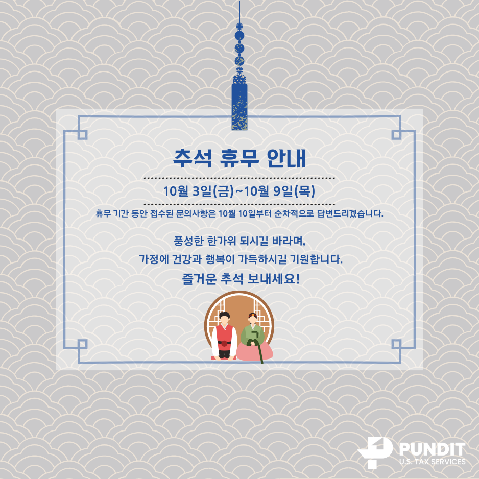 안녕하세요, 여러분의 미국 세무전문가 PUNDIT입니다!